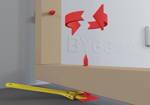 Därefter spänns väggen fast mellan tak och golv genom att skruva ut skruvarna upptill och nertill, för att till sist även spänna ut skruvarna på sidorna.