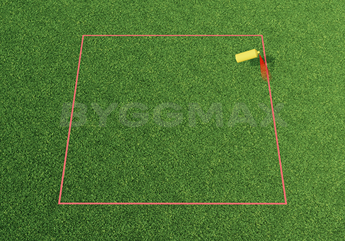 Börja med att välja ut platsen där du ska ha din nya vedbod och mät ut en yta på drygt 2 x 2 m. Använd märkfärg för att markera måtten på ytan.