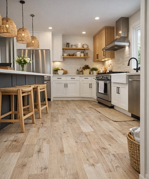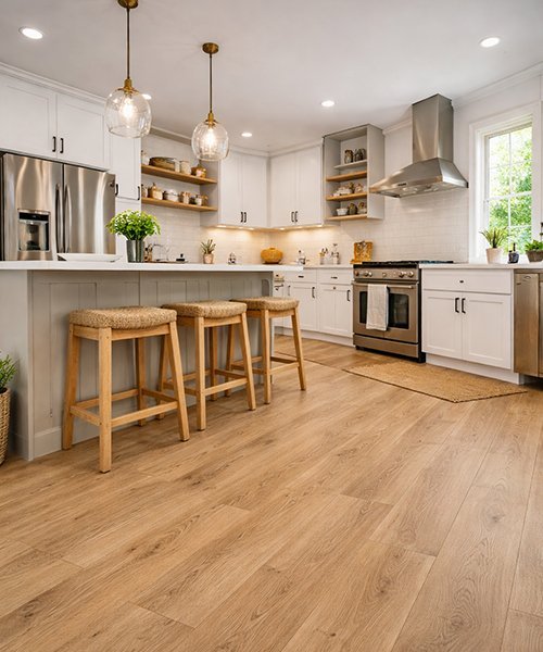 En av de största trenderna just nu inom inredning är köksgolv i mjuka och naturliga toner. Allt fler väljer ett golv till köket där lugna, harmoniska färger skapar en varm och välkomnande känsla. Genom att välja ett golv till köket i naturliga nyanser oavsett om du föredrar trä eller vinyl, skapar du en tidlös bas som är enkel att kombinera med både moderna och klassiska kökslösningar.