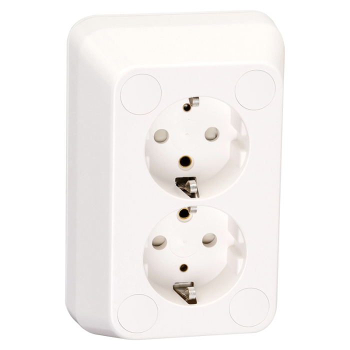 • 2-vägs jordat vägguttag för utanpåliggande montering