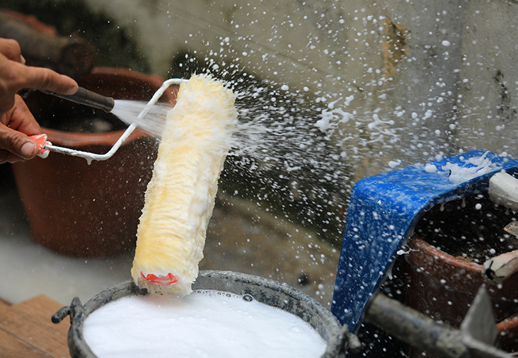 För lång livslängd på din roller är det viktigt att rengöra den ordentligt när du är klar med målningen. Börja med att skrapa bort så mycket färg du kan till färgburken. Har du målat med vattenburen färg kan du låta rollern stå i varmt vatten med diskmedel i cirka två timmar. Skölj sedan av, torka av med ren trasa och förvara den på ett torrt ställe till nästa gång. För oljebaserad färg behöver du använda lösningsmedel. Vi rekommenderar att läsa instruktionerna på färgburken för vilket lösningsmedel du ska använda. Vattnet med färgrester ska absolut inte spolas ner i avloppet, utan lämnas in till närmsta miljöstation eller återvinningscentral.