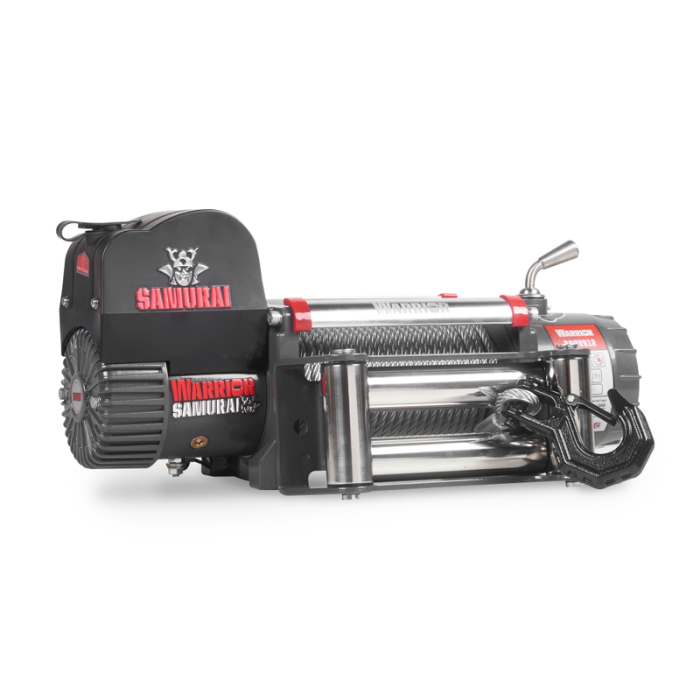 Warrior Winches senaste generation av Samurai-serien har inneburit att Samuraivinscharna nu har en revolutionerande extern broms, är snabbare, drar mindre ström, mer kapabla att hålla last stilla samt har en minskad värmeutveckling i trumman - vilket gör den perfekt för Armortek syntetrep. Samurai är den perfekta vinschen för bärgning och 4x4-applikationer. Denna premiumvinsch är försedd med en lindad dubbelkappslad motor av hög kvalité med solida mässingskontakter och kraftfulla 4-pins kontaktorer som är vattentäta. Trumman, som i denna nya V2-generationen utvecklar mindre värme, är dubbelkappslad och försedd med underhållsfria kullager. Vidare har vi utrustat Samurai med en tyst planetväxel i massivt stål och både rep/vajerguide och fästen är i aluminium.